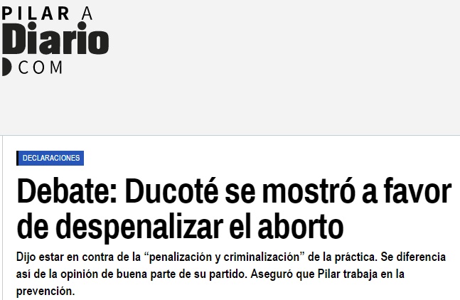 Seguramente tendrá charlas sobre los distintos colores de pañuelos que tienen con su jefe político Nicolás Ducoté. Al ex Intendente se lo señalaba por ser uno de los alcaldes abortistas del macrismo. “En lo personal, soy contrario a la penalización y la criminalización de estos hechos”, manifestó en la previa al primer debate que ocurrió en el Congreso y terminó a favor de aquellos que dicen defender «las 2 vidas».
