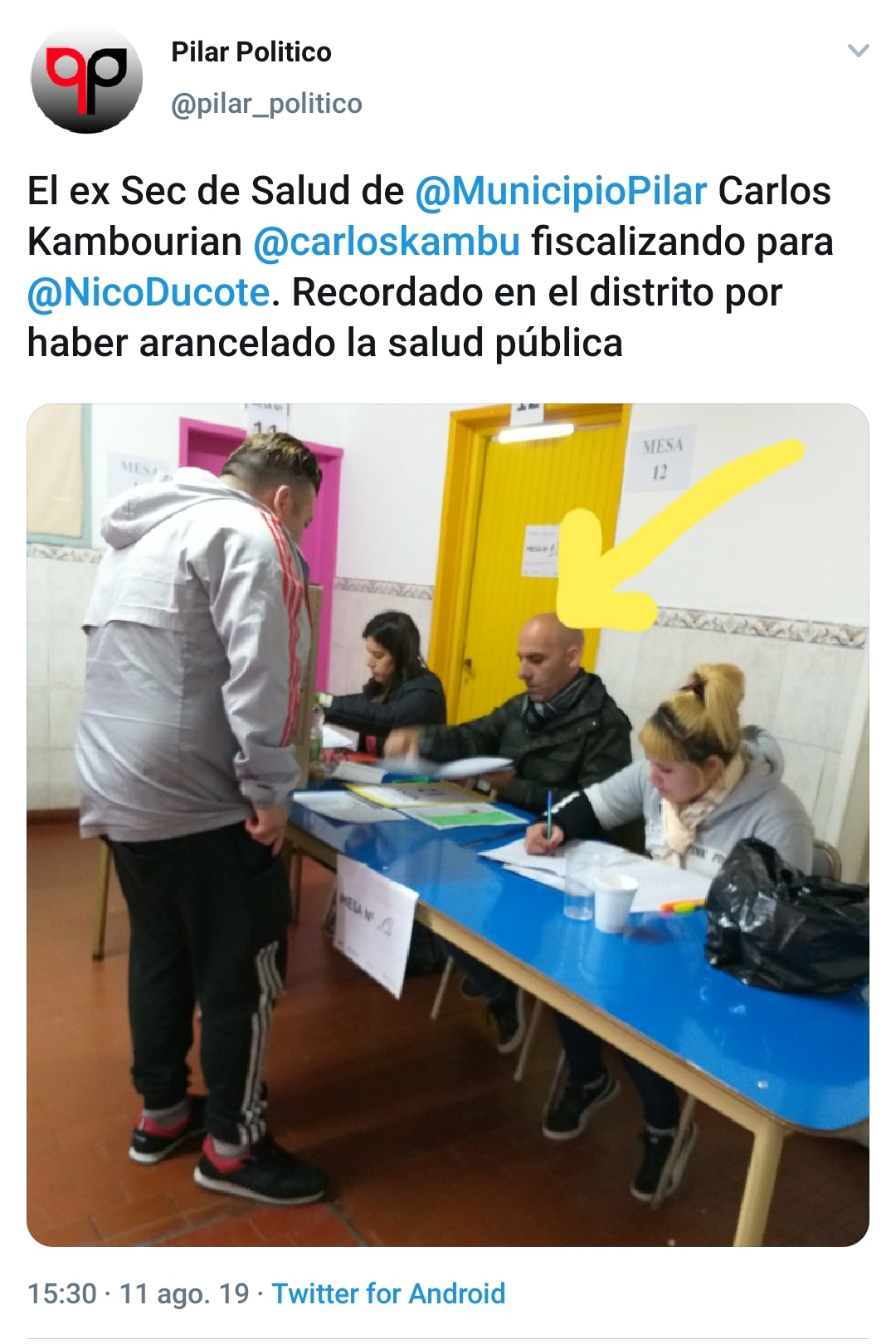 Nadie podrá olvidar el paso del Dr. Carlos Kambourian por Pilar. Traído por Nicolás Ducoté para ser su Secretario de Salud instaló el pago de bonos dentro del sistema municipal de salud, ósea aranceló la salud pública. El pediatra que buscó hasta su último día en el distrito cerrar varios Centros de Atención Primaria y a quien alguien de la antigua debería preguntarle dónde quedó la famosa carpa de la Salud. ¿Creyó que era propia como la tarjeta de crédito del Garraham?