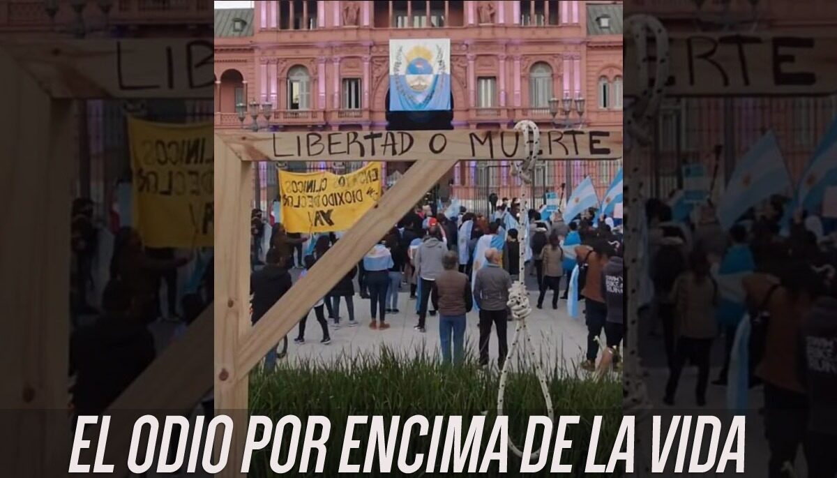 Lamentablemente hubo otras muestras de odio que tomaban a la muerte como una «solución» a la «falta de libertad» de los anticuarentena. La imagen del muchacho con el cartel que decía: «Fase 1 Fusilar políticos, Fase 2 Fusilar periodistas, Fase 3 Argentina potencia», recorrió las redes sociales. En medio de la pandemia que se ha llevado cientos de miles de vidas en todo el mundo, los anticuarentena basaron sus pedidos en más muertes. Increíble pero real.