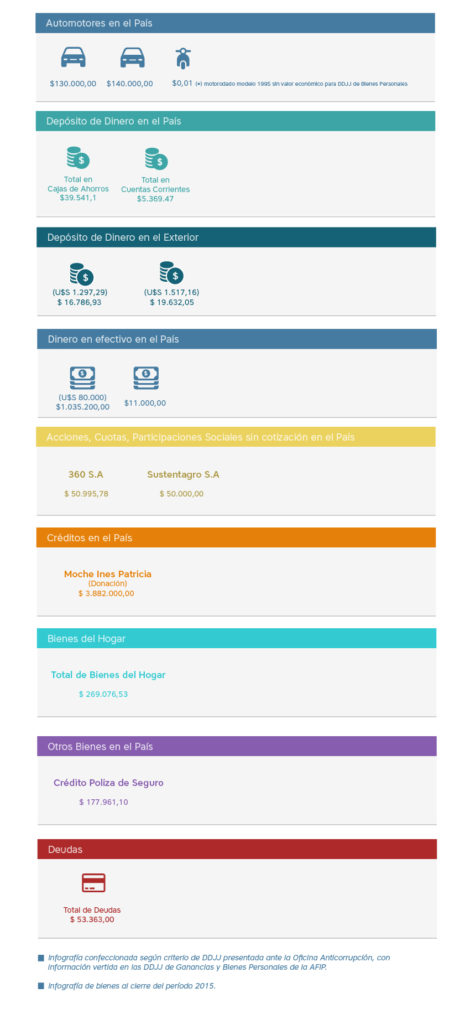 Seguramente asesorado por su mano derecha y ex Secretaria de Hacienda, Cecilia Cabrera, la primera DDJJ parecía haber obviado algunos datos importantes de su patrimonio, como propiedades o algunas posibles inversiones realizadas junto a su hermano Michael en el exterior (puntualmente en Miami). Una motito modelo ’95, un Volkswagen Vento del año 2006 y una Renault Scenic 2010 fueron sus únicos vehículos declarados. Los autos evidentemente tenían varios kilómetros porque tenían valores bajos, $130.000 y $140.000 según la presentación del Licenciado Ducoté.