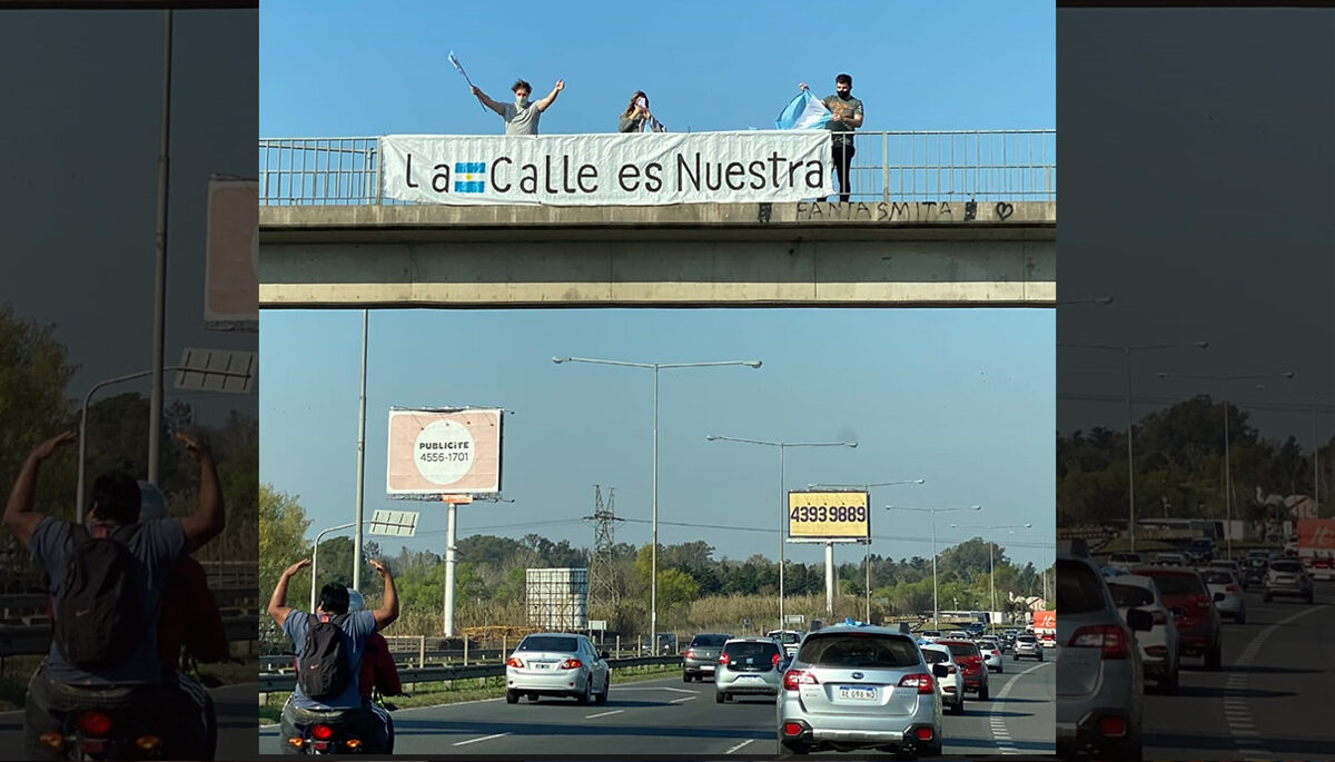«La calle es nuestra» esa bandera colgada en uno de los puentes de la autopista Panamericana es la muestra más clara que el objetivo de cada marcha de los anticuarentena es político. Esa búsqueda de los dirigentes opositores de volver al poder antes de lo que marca la democracia pone en riesgo a la población de manera constante, pero parece que proteger a los vecinos hoy no está entre sus prioridades.