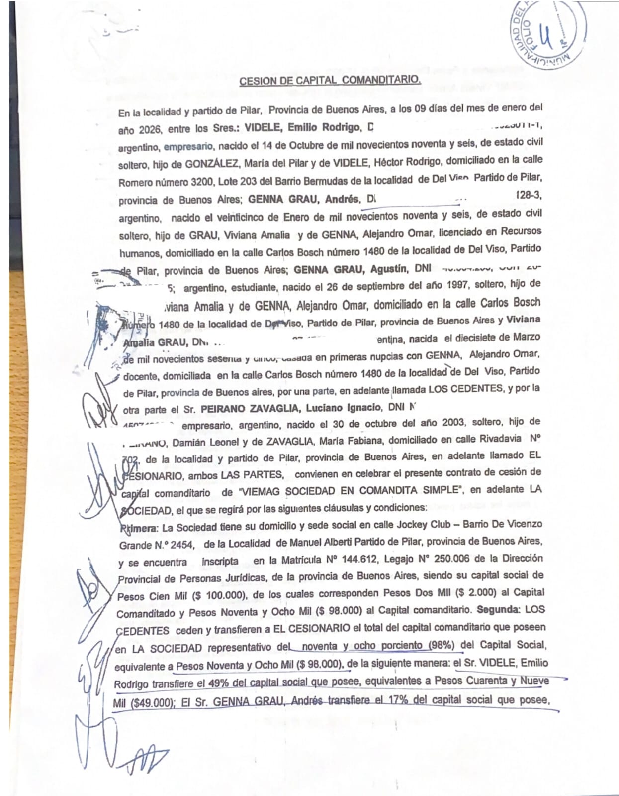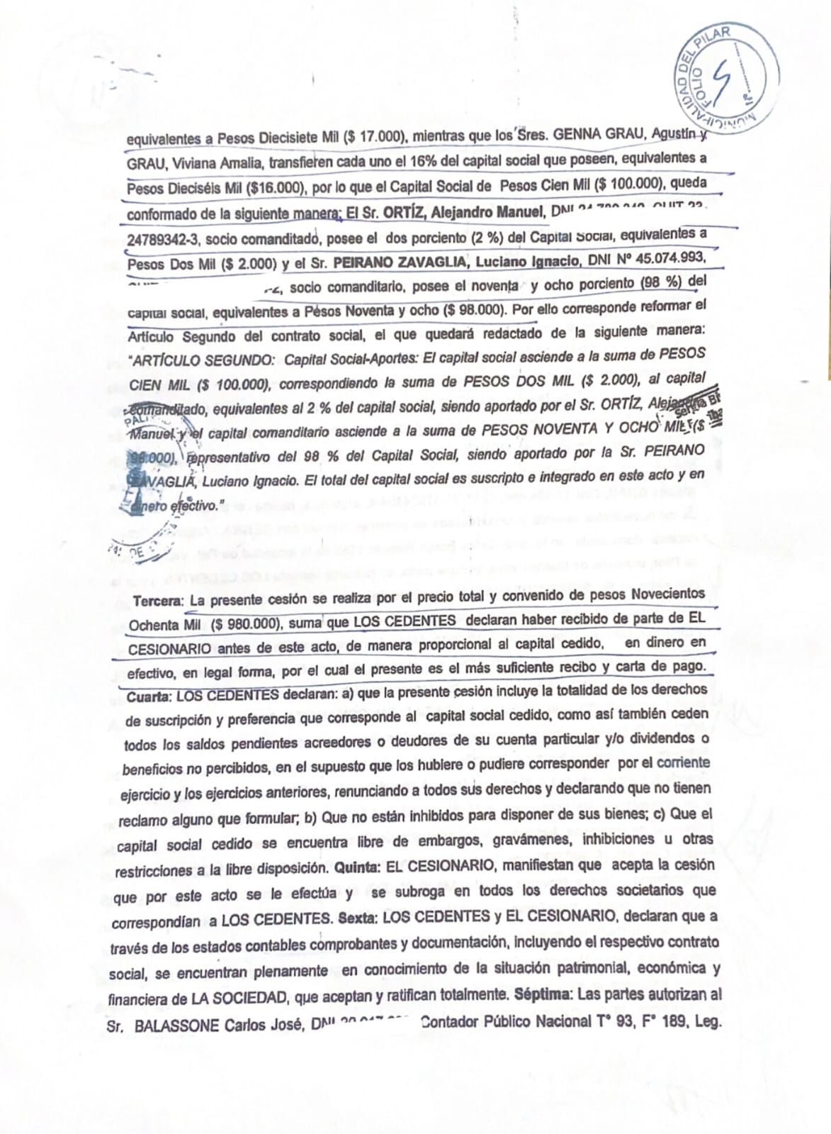 Tan ridículas son las sumas de la documentación de la cesión (fotos), que ANDRÉS GENNA GRAU queda más expuesto al haber cedido su porcentaje por $17.000, ni los bolsones Compra Votos de Ducote eran tan baratos.