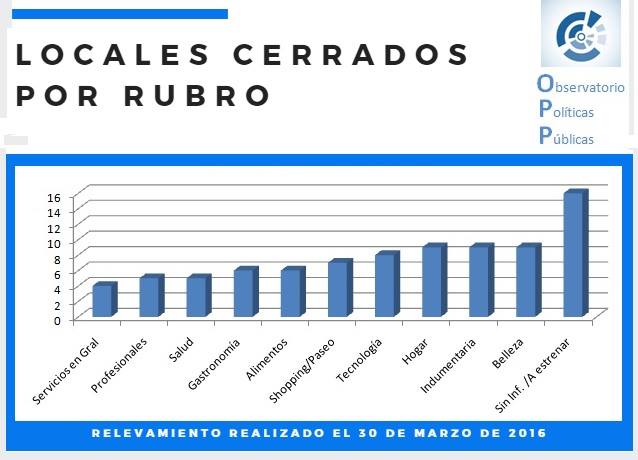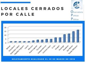 Desde el Observatorio de Políticas Públicas se publicó un relevamiento de los locales cerrados en el centro de la ciudad Pilar, con el argumento de poder alcanzar una visión clara de la realidad del distrito. El mismo se llevó a cabo por sus integrantes durante la última semana del mes de marzo. Como resultado surgió la alarmante cifra de 84 locales cerrados en las 43 manzanas relevadas. “Esperamos que el Municipio revea algún tipo de ayuda a los comerciantes para poder frenar o revertir esta tendencia”, aseguraron desde la organización reveladora del dato.