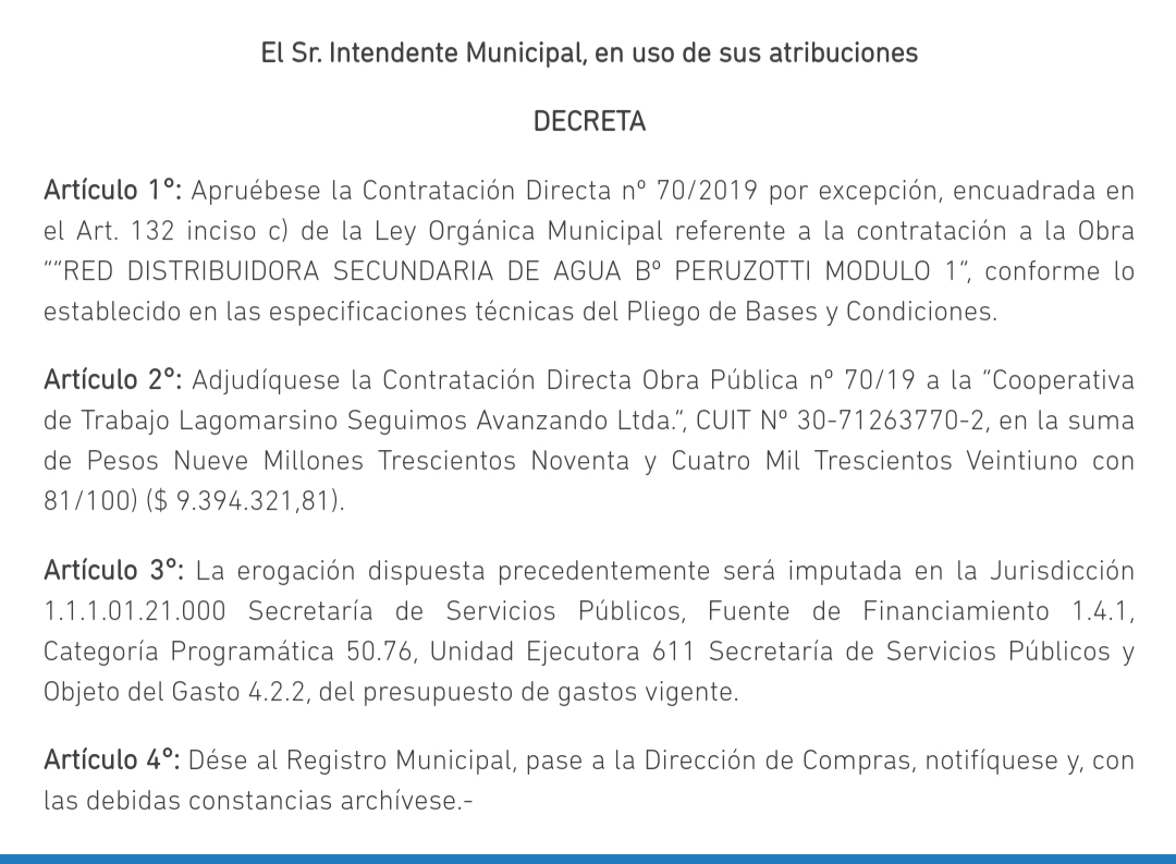 En otro ámbito se dieron de baja licitaciones para realizar asfaltos necesarios para los vecinos en todo el distrito, en el marco de una coyuntura económica muy compleja y más aún con la Emergencia Alimentaria declarada en el territorio. Sin embargo, Ducoté se muestra austero en algunos aspectos y en otros (menos visibles) continúa destinando millones de pesos de las arcas municipales. Por ejemplo en cableados de red, trabajos en los cuales desembolsó más de $22.000.000. Casualidad o no, la firma Tecnología e Innovación SA siempre resulta beneficiosa. Parece que el proveedor tiene una excelente relación con el Sheriff Jorge Leonhardt en Seguridad y con el multifacético Jorge Storni para quedarse con trabajos también en Salud.