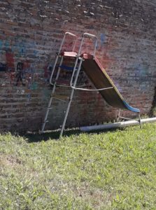 En el nivel inicial uno de los objetivos es la sociabilidad de los niños entre sí a través del juego. Una mamá del Jardín N° 919, también en la localidad La Lonja, mostró que esa meta es difícil de cumplir con la actualidad de la institución. Envió fotos de la triste realidad que se encuentran docentes y alumnos cuando salen al patio a jugar. Restos de juegos, que a medida que paso el tiempo ya son irreconocibles. Sólo quedaron los esqueletos de lo que supieron ser. Y los que sobreviven representan un riesgo para los niños.