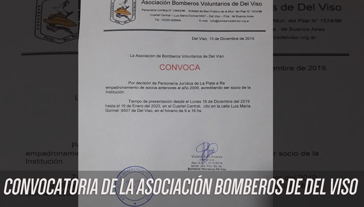 03/01/2020 | La Asociación Bomberos Voluntarios de Del Viso convoca a sus socios anteriores al año 2009 para el reempadronamiento.