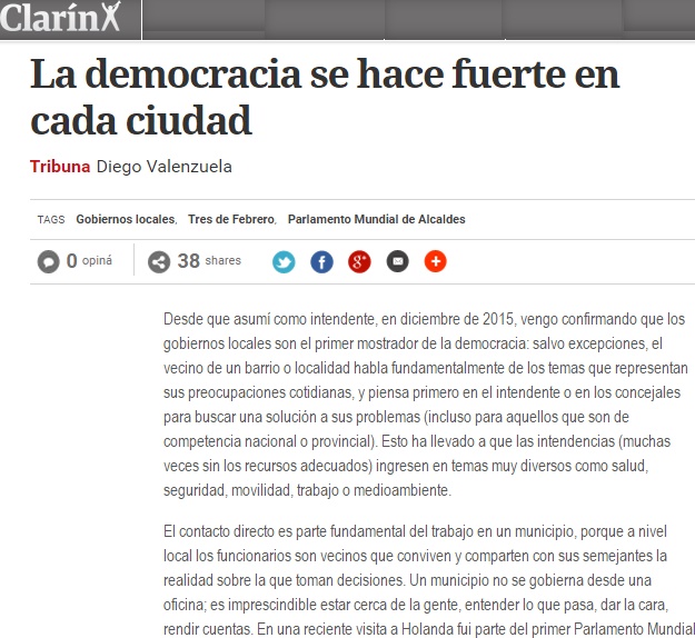 12/10/2016 | El Intendente de Tres de Febrero, Diego Valenzuela, redactó unas líneas en Clarín que parecieron consejos a su colega Nicolás Ducoté. “Los funcionarios son vecinos que conviven y comparten con sus semejantes”, expresó. Sólo en la ficción u otros distritos.