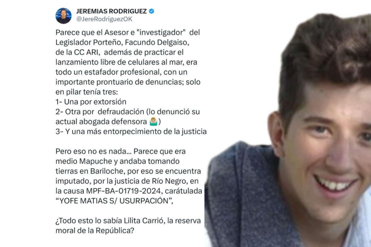 19/01/2026 | Jeremías Rodríguez, integrante de la Coalición Cívica de Luján, aseguró que Matías Yofe está imputado por la Justicia de Río Negro por tomar tierras en Bariloche.