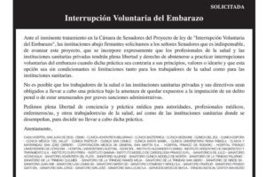 SOLICITADA DE INSTITUCIONES EN CONTRA DEL ABORTO, FIRMADA POR EL HUA.