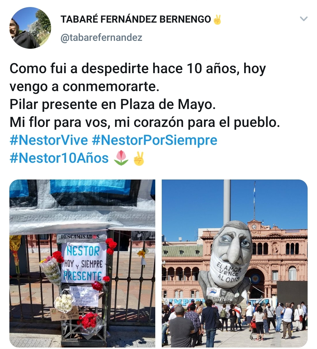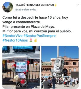 Otra muestra de amor, admiración y cariño fue protagonizada por Tabaré Fernández, trabajador municipal y uno de los militantes peronistas más reconocidos en el distrito, quien decidió ir hasta Plaza de Mayo a dejar una flor donde miles de argentinos se acercaron a recordar a Néstor. Él como muchos pilarenses más tuvieron una jornada de mucha nostalgia y grandes recuerdos.