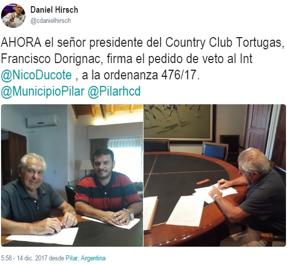 Es verdad que no firmaron todos los residentes de esa urbanización privada, pero la imagen de Dorignac avalando ese pedido es representativo de un sector del electorado que siempre acompañó a Ducoté. Su hermana vive allí y se encargó que sea el egresado de Harvard el elegido de esos «pilarenses» tan particulares por el micro clima que existe entre los muros perimetrales. Evidentemente la actualidad no es la misma, al jefe comunal se lo vio más cercano a Del Viso y el country eligió a Manuel Alberti.