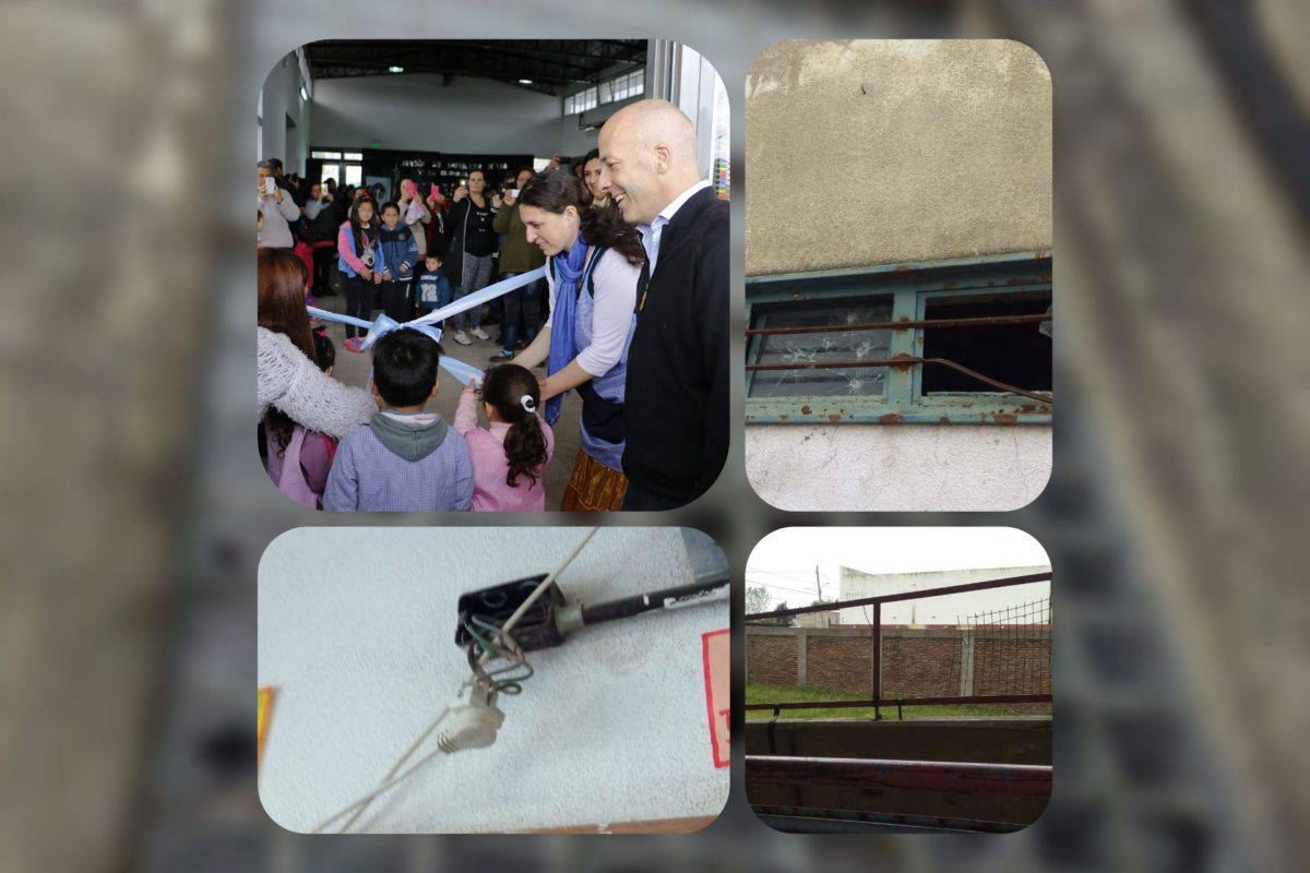 Con los vidrios rotos; un techo que comenzó a refaccionarse hace dos años y aún no pudieron terminarlo; con un pozo en el patio que representa un peligro importante para los chicos; con una rampa para discapacitados que ya no tiene malla de contención en su baranda; y con deficiencias en la instalación eléctrica así asisten a diario los chicos de los barrios Agustoni, San Alejo y La Lomita a la Escuela N°40. Por supuesto que ese edificio no va a estar en las fotos publicadas en las redes sociales por el Intendente Ducoté o el Presidente del Consejo Escolar Donoso.