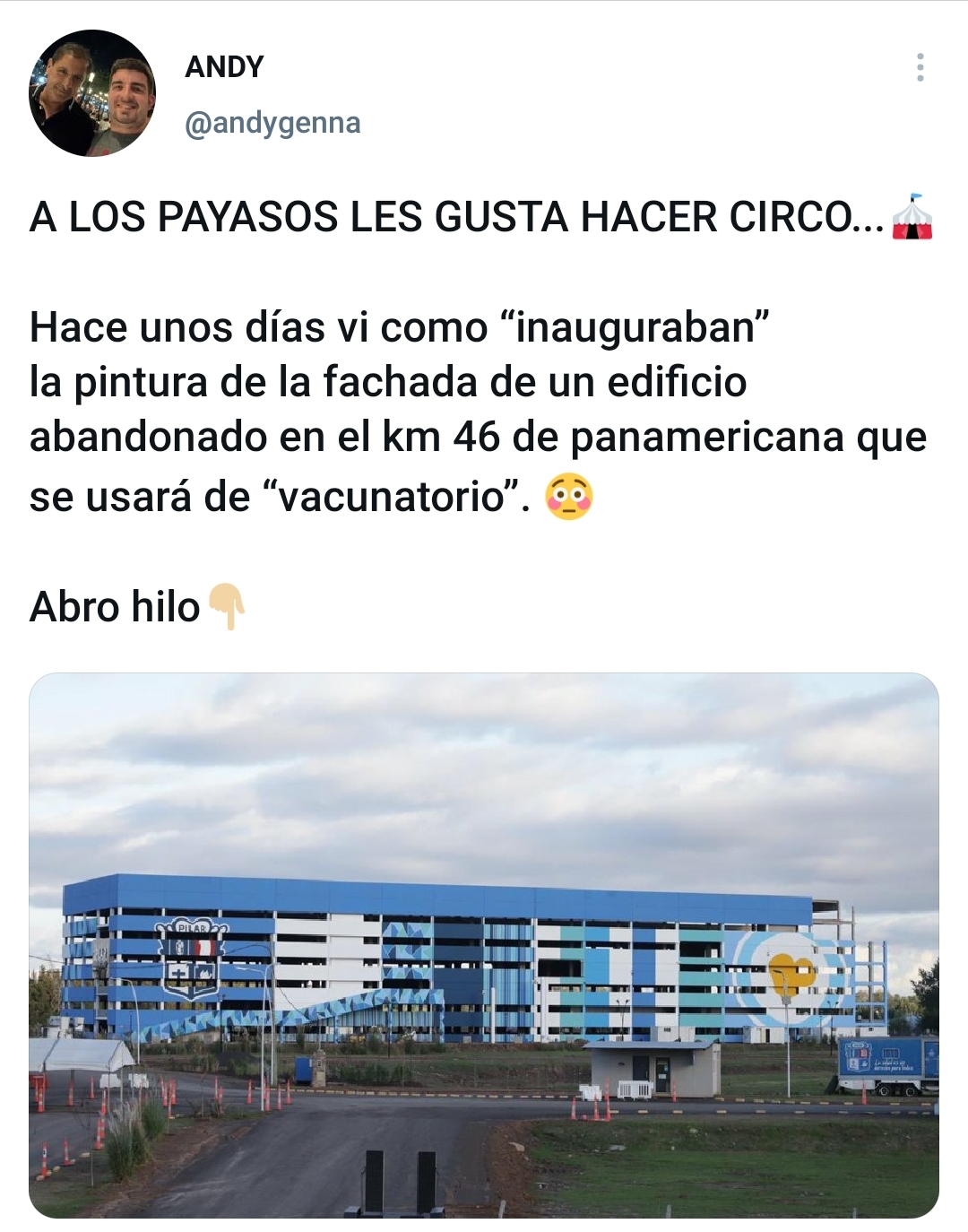 No tiene estacas, ni lonas, está muy distante de parecerse a una carpa, ahí los protagonitas principales son el personal médico y trabajadores municipales que reciben y atienden a los vecinos de Pilar de la mejor manera posible. No son payasos, pero logran que cada uno que tenga turno para vacunarse se vaya con una sonrisa de oreja a oreja y con mucha más esperanza que antes.