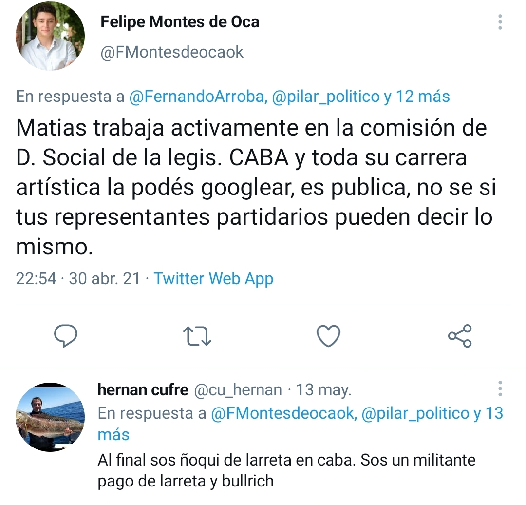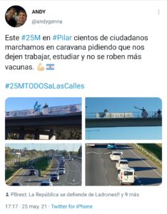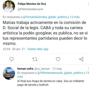 «Este #25M en Pilar cientos de ciudadanos marchamos en caravana pidiendo que nos dejen trabajar» expresó el ex Director de Empleos durante la gestión de Nicolás Ducoté, Andrés Genna Grau, en el tuit más insólito de los anticuarentenas. Su pedido de «poder trabajar» no coincide con sus actuales ocupaciones. Y lo mismo sucede con su compañero de la mesa distrital de la Coalición Cívica, el Profesor de canto Matías Yofe. Los ñoquis piden trabajar, parece la vieja sección de VideoMatch, «el show del chiste».