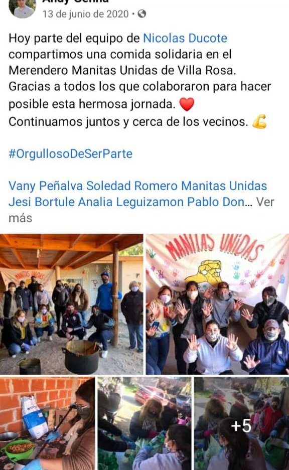 Durante el pasado viernes 21 de mayo quedó detenida una persona por la venta de drogas en el barrio El Escondrijo, en Villa Rosa. Casualmente en la sede del merendero «Manitos arriba» y casas linderas, todas las propiedades de la misma familia. Justamente allí, Ducoté, Yofe, Genna Grau y el resto de Juntos por el Cambio realizaron varias reuniones. Muchas de ellas están registradas por las publicaciones en Facebook. Sí, los dirigentes macristas convocaban a los vecinos en un lugar donde se secuestraron gran cantidad de dosis de cocaína y marihuana, dinero, telefonía celular y elementos utilizados para la elaboración y fraccionamiento de los estupefacientes según lo publicado por los colegas en El Diario Regional de Pilar.