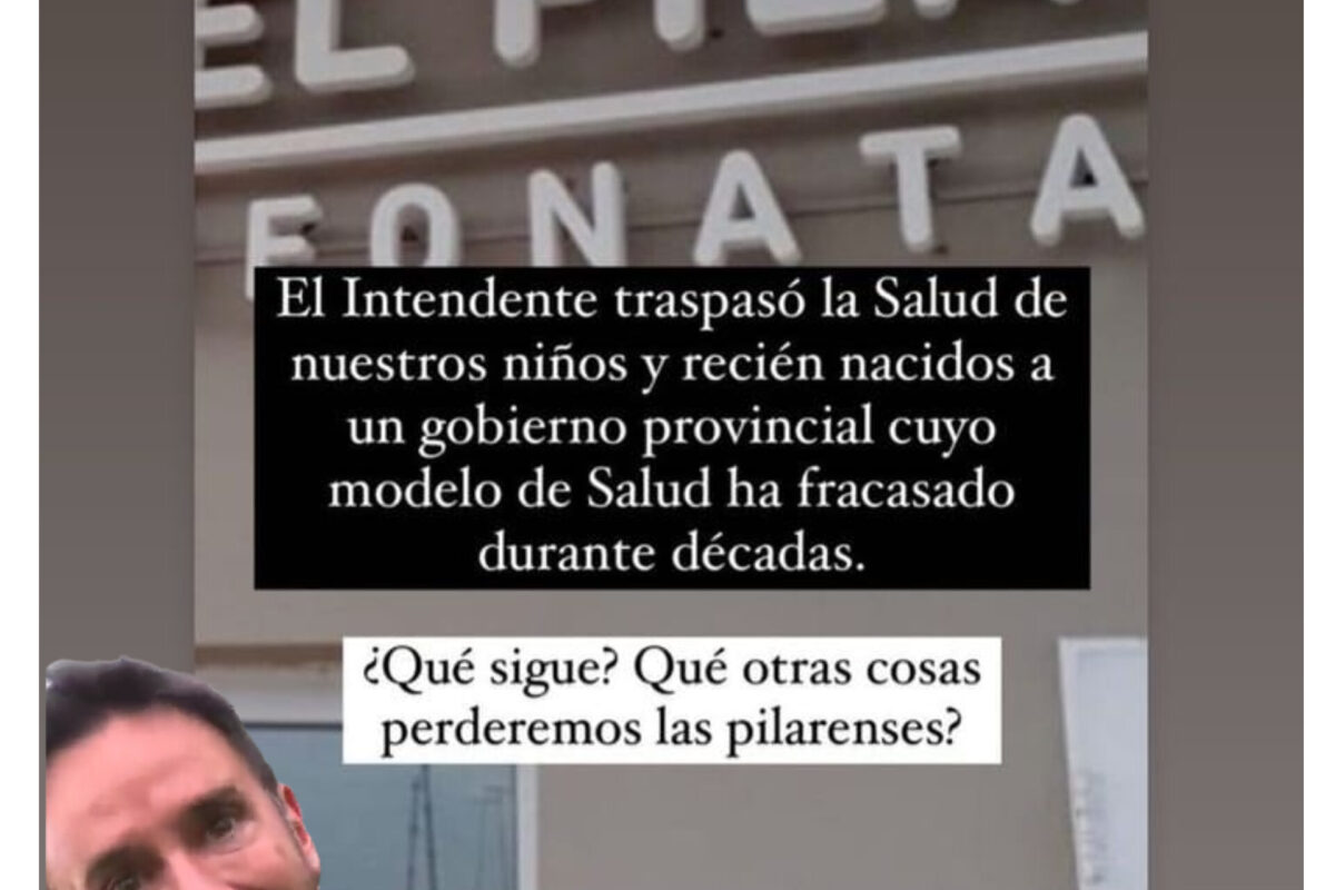 En su publicación en las redes sociales donde critica lo votado por sus colegas se pregunta «¿Qué otra cosa perderemos los pilarenses?». Además de vago, misogino, maltratador y violento, desconoce las legislaciones vigentes. Suponer que el Municipio va a perder el Hospital Maternal porque lo administrará la Provincia es, cuanto menos, una burrada. El hospital continuará al servicio de los pilarenses, parece que en la universidad privada a la que asistió no le enseñaron el sentido común.