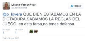 En casi quince meses de gestión, uno de los puntos que ha destacado al gobierno de Nicolás Ducoté son las expresiones y acciones de un momento triste de nuestro país. Tuvo que echar a quien había elegido como Director de Licencias de Conducir, Agustín De la Precilla por sus publicaciones a favor de los militares condenados por delitos de lesa humanidad; Jorge Leonhardt ordenó realizar razias en boliches; entre otras situaciones. Pilar Político encontró otra persona de similar pensamiento de la actual gestión de Cambiemos. Repasaremos los tuits de la polémica Interventora de William Morris, Liliana Donnoli, más conocida como “Liliana bóveda k”.