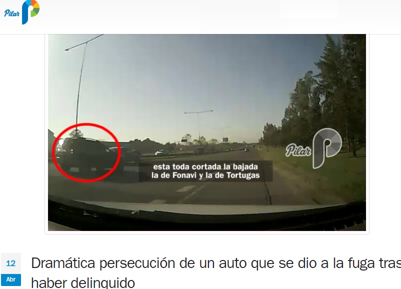 Para tratar de sacarse por unos días el rótulo de “Pilar inseguro”, desde la comuna salieron a proyectar el video captado por las cámaras ubicadas en los móviles de la fuerza local. “Dramática persecución de un auto que se dio a la fuga tras haber delinquido” fue el título de la gacetilla de prensa enviada desde el área de Prensa municipal. En la cual se ofreció el video en alta definición.