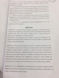 Ayer los concejales votaron en comisión interna que mañana se cree una nueva ordenanza con una flexibilización al máximo de los requisitos para instalar un supermercado. Inclusive todos los existentes que no cumplan con las legislaciones vigentes, tendrán un año para adecuarse. Esto abarca también a los que están trabajando sin habilitaciones. Uno de los puntos más importantes es la reducción del margen de distancia entre uno y otro, dejará de ser de 600 metros como lo indicaba la ordenanza derogada y pasará a tan sólo la mitad. Además, se eliminará la exigencia de poseer un espacio de estacionamiento equivalente al 100% del salón de ventas.