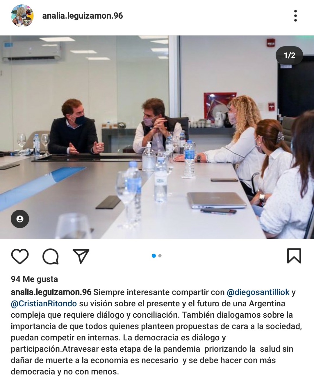 «Dialogamos sobre la importancia de que todos quienes planteen propuestas de cara a la sociedad, puedan competir en internas», posteó Leguizamón en su cuenta de Instagram sobre el encuentro que para ella sólo participó junto a Santilli y Ritondo. Suena a ruego para que realmente le permitan al ex Intendente Nicolás Ducoté presentar su lista, algo que está en duda debido a su mala imagen dentro del macrismo. Ni la sociedad, ni sus colegas olvidan sus 12 causas judiciales.