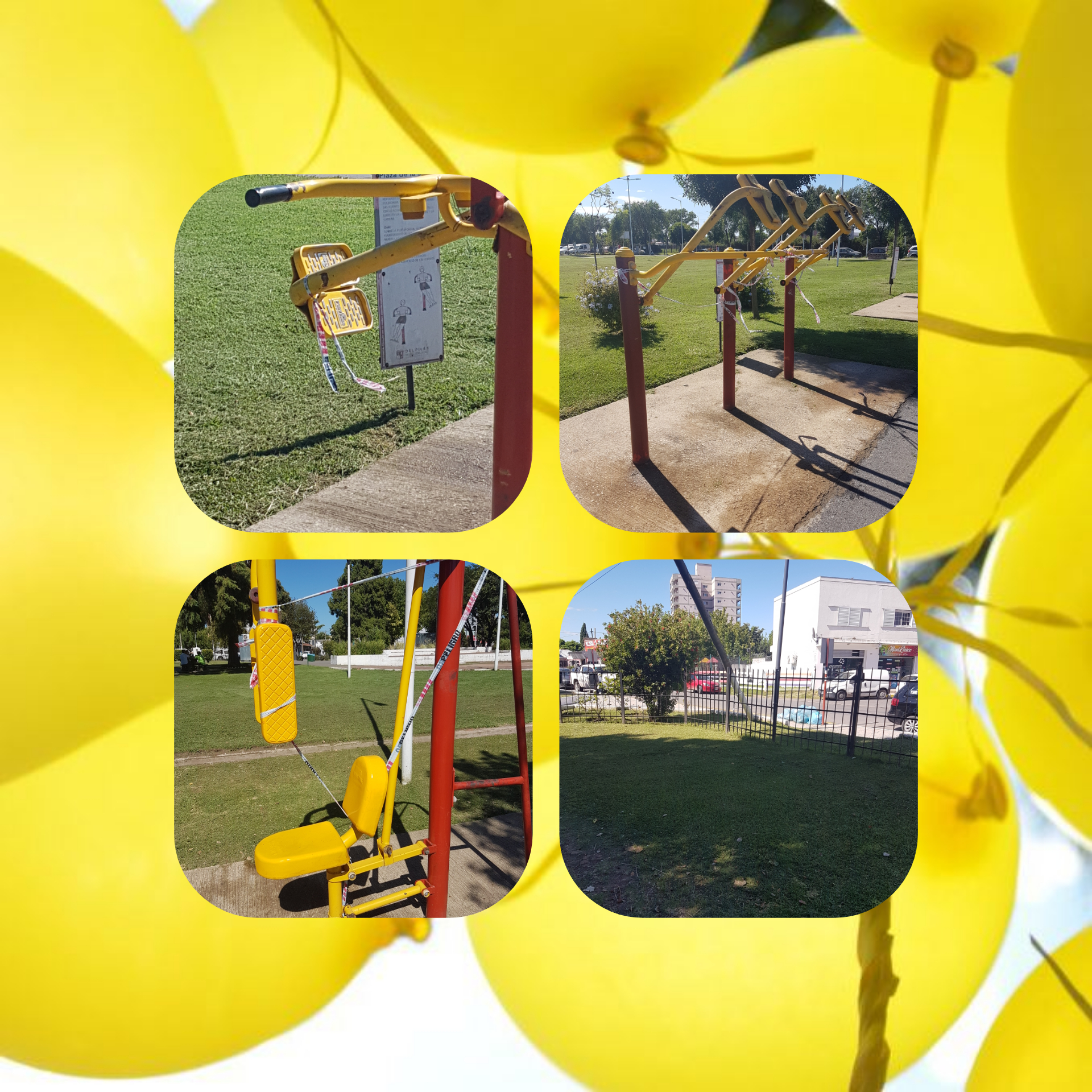 Las deficiencias que se observan a simple vista son algunas estructuras con roturas y encintadas con fajas de peligro, la mayoría desgastadas por el prolongado tiempo que pasaron allí para que los pilarenses no las utilicen. A eso se le suma el poste de luz que está a punto de caerse, que lejos de darle un toque de glamour por su parecido a la Torre de Pisa genera temor y mantiene el peligro latente a que alguien salga lastimado si se cae totalmente.