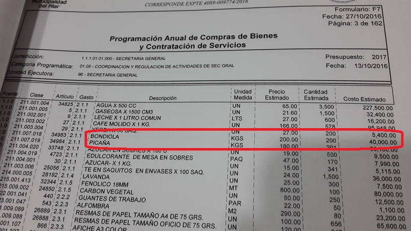 Desde ayer, los concejales pueden acceder al expediente del Presupuesto 2017. Claro que sólo pudieron observar en general algunos datos de los cinco cuerpos que lo componen y lo apuntado por Ravina fue de lo más impactante a primera vista. Con un costo de $200 por kilo, estima que van a consumir 200, la suma que se gastará en bondiolas será de $40.000. Ni salamín, ni mortadela o si quieren a parrilla, falda tampoco, sólo bondiolas y picaña.