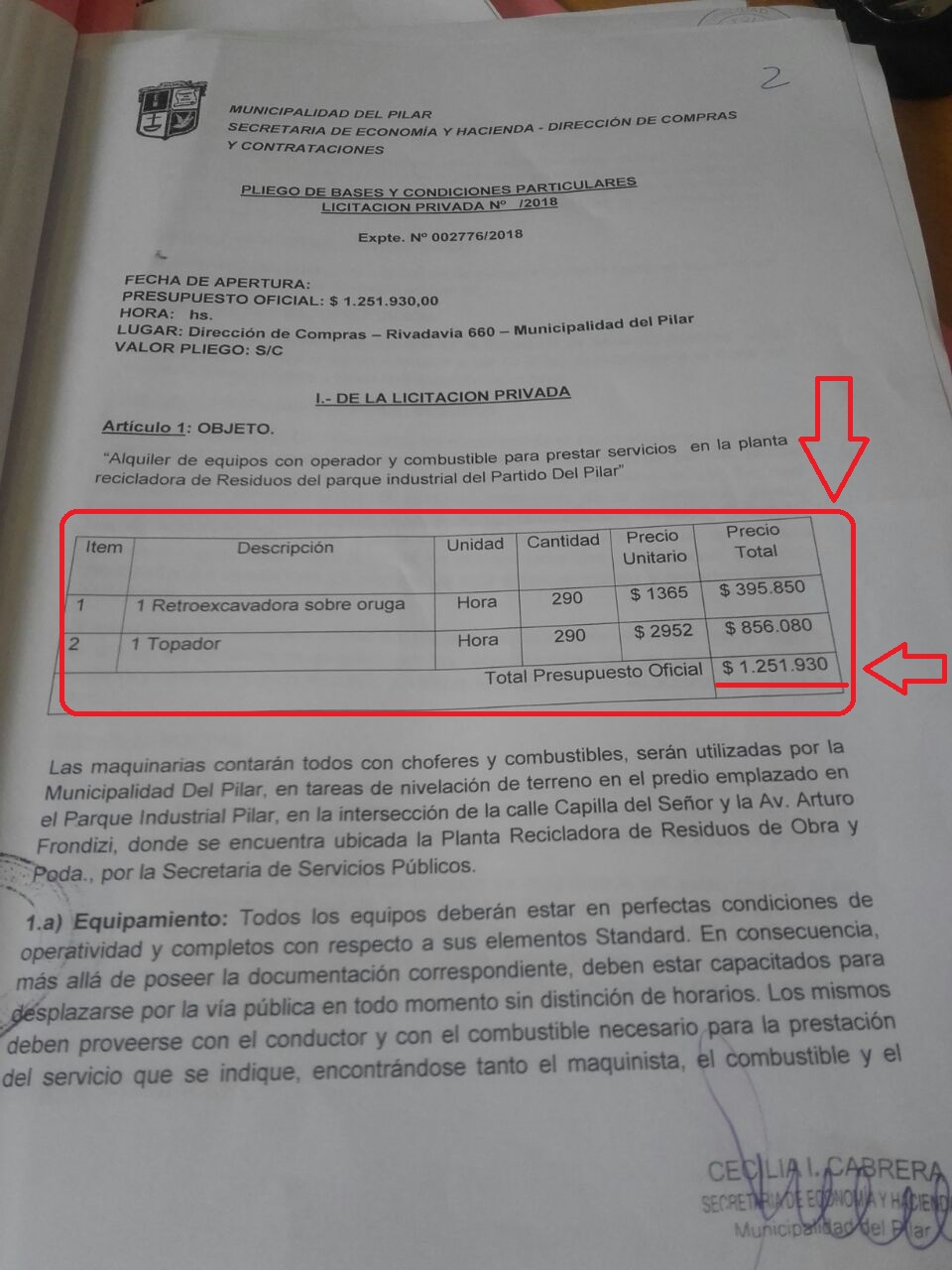 Increíblemente, en Pilar se destina la misma cantidad de fondos para arreglos de calles como para el mantenimiento del basural oficial del estado. También fue Eduardo Villar quien contrató maquinaria por $1.251.000 para «tareas de nivelación de terreno en el predio emplazado en el Parque Industrial de Pilar, en la intersección de la calle Capilla del Señor y la Av. Arturo Frondizi, donde se encuentra ubicada la Planta Recicladora de Residuos de Obra y Poda», según el expediente (FOTO) que te muestra Pilar Político. Al ex funcionario porteño deberían explicarle que toda la ciudadanía ya sabe que allí sólo se tira la basura, no se recicla. Osea, no hace falta que mienta en un documento oficial.