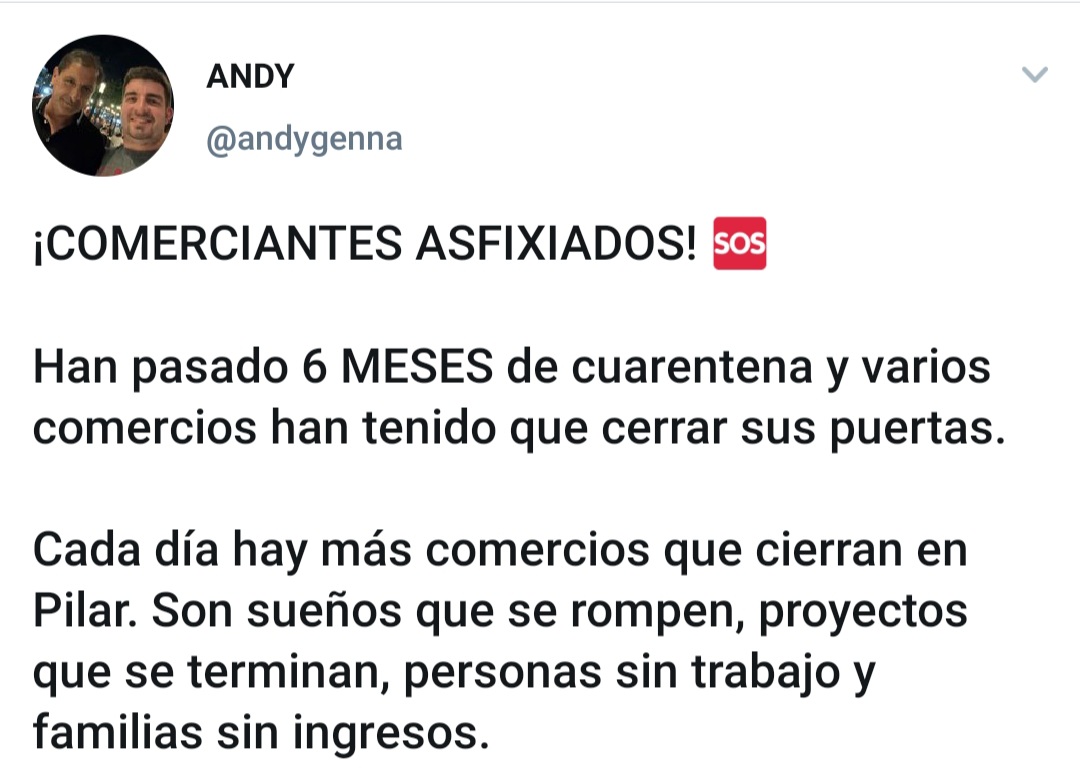 Fueron cuatro años esperando el segundo semestre, de persianas bajas, de industrias cerradas y de persecución a quienes no pudieron cumplir con las tasas municipales. Nunca hubo un apoyo hacia los comerciantes comprendiendo que las políticas económicas del gobierno nacional de Mauricio Macri estaban haciendo estragos. Todo lo contrario, en Pilar, el ex Intendente Nicolás Ducoté persiguió a esos «morosos» y los publicó en el Veraz. Hoy en su calidad de opositor reclama lo contrario.