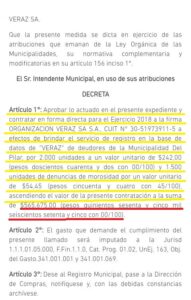 CONTRATACIÓN DEL VERAZ DEL 2018 POR MÁS DE $500.000.