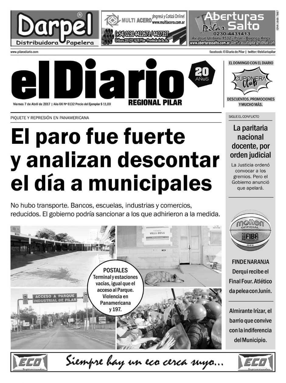 Con leyes que los avalen o sin ellas, los municipales de Pilar parecen que no tienen derechos y eso los convierte en rehenes. TAPA El Diario Regional de Pilar, viernes 7 de abril de 2017.
