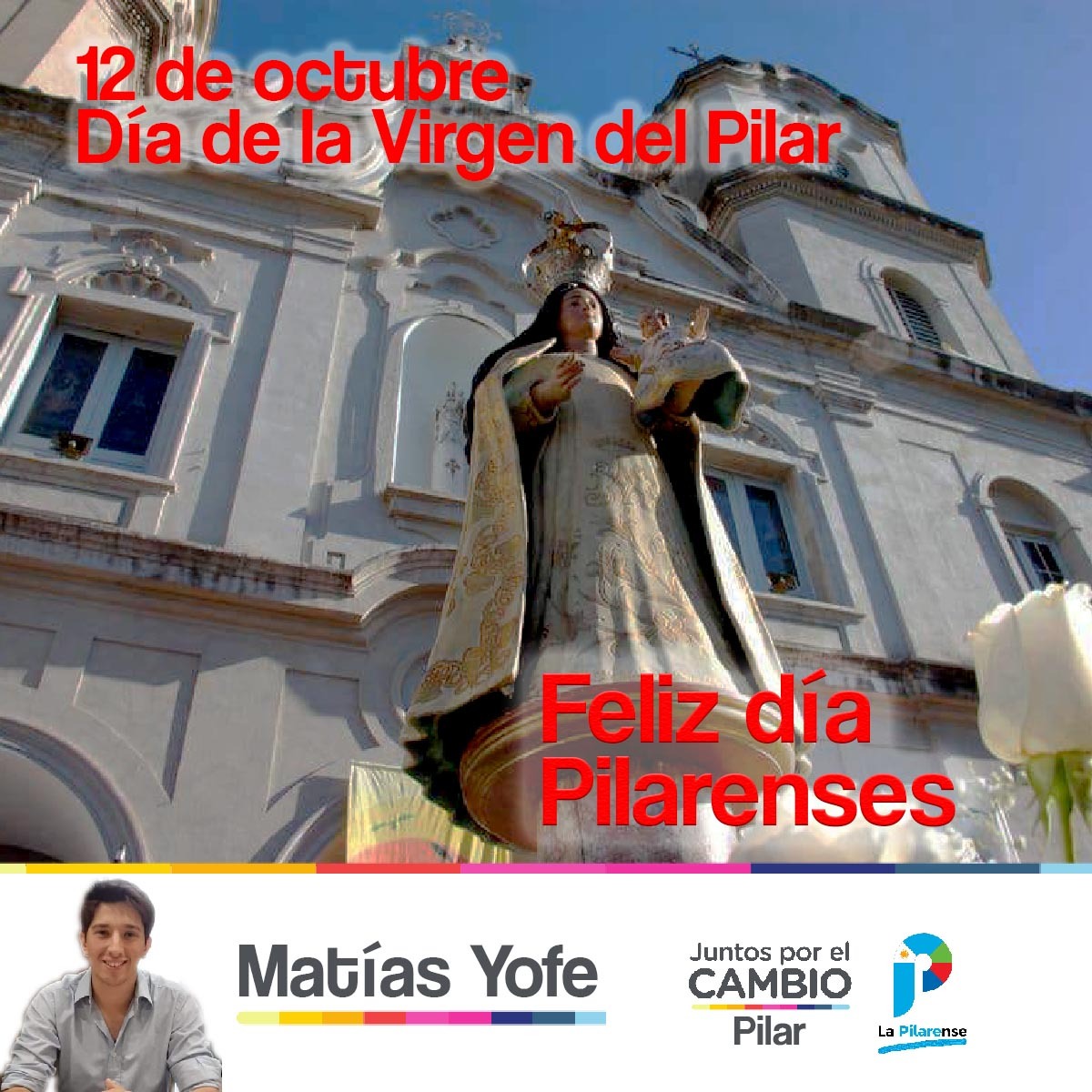 Matías Yofe continúa con sus particulares acciones que sorprenden. En medio de las Fiestas Patronales de Nuestra Señora del Pilar decidió justamente tomar imágenes de la virgen para su campaña personal. Algo pocas veces visto en la política. Muchos han hablado de la religión, de la libertad o no de culto, de los recursos que el estado le entrega a la iglesia, del debate por la legalización del aborto sosteniéndose en creencias religiosas, pero jamás alguien colocó la imagen de una virgen con su banner de campaña.