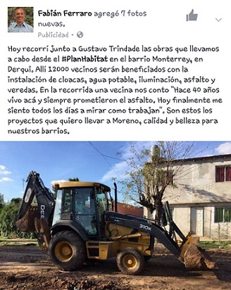 09/05/2017 | Fabián Ferraro continúa mostrándose como candidato de Moreno utilizando su figura de funcionario de Pilar. ¿Nicolás Ducoté financiará su campaña? ¿O lo seguirán haciendo los contribuyentes?