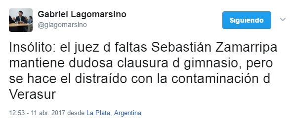13/04/2017 | Gabriel Lagomarsino acusa al Juez de Faltas, Sebastián Zamarripa, de mantener efectiva una “dudosa clausura de gimnasio”. Se refiere a uno que está ubicado en el barrio Villa Morra. Fue denunciado por un ex funcionario zuccarista.
