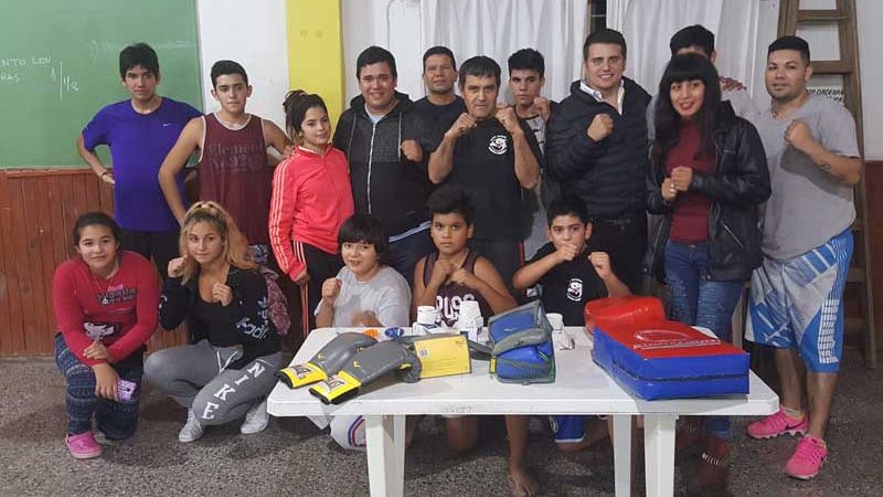 19/04/2017 | La academia de kick boxing de Vicente Figueredo que funciona en la sociedad de fomento Monterrey Sur en la localidad de Presidente Derqui recibió elementos para la práctica deportiva. Fueron entregados por Iván Giordano.