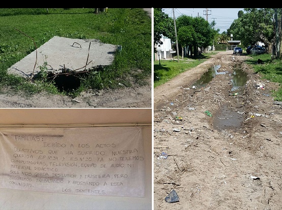 27/10/2016 | El estado de las calles sigue siendo un gran problema para la localidad. Hubo un singular arreglo en la arteria Eva Perón. Los constantes robos dejaron sin artículos tecnológicos a la Escuela N°34.
