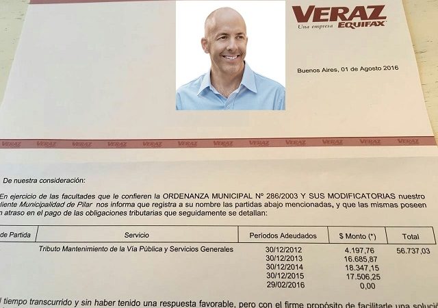 29/08/2016 | La Municipalidad del Pilar acordó la publicación de todos sus morosos en el Veraz. Aquellos que tengan una deuda con la Comuna no podan acceder a créditos. Están incluidos los pequeños contribuyentes. Reclama por el pago de una tasa por servicios que muchas veces no se cumplen.
