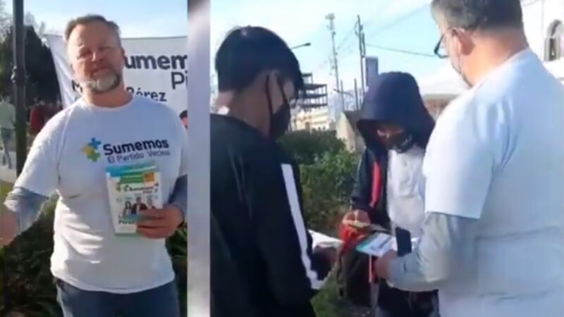 25/08/2021 | El tercer precandidato a concejal del partido vecinal, Marcelo Buyatti, se hizo presente en la plaza 12 de octubre para mantener contacto con los vecinos de la ciudad. “Queremos ser los veedores en el Concejo Deliberante”, manifestó.