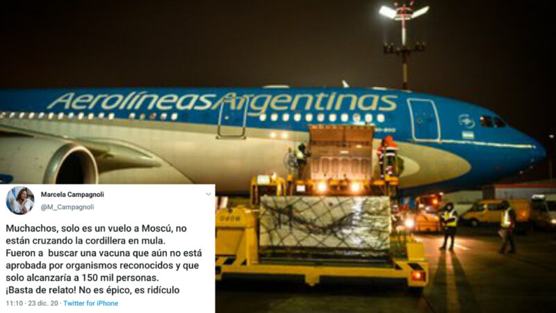 24/12/2020 | La Diputada de Juntos por el Cambio, Marcela Campagnoli, minimizó el vuelo a Moscú que fue en busca de la vacuna contra el coronavirus. Sin embargo no dijo nada cuando se encontraron 16.000.000 de vacunas vencidas que el gobierno de Mauricio Macri nunca distribuyó.