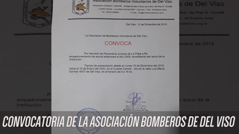 03/01/2020 | La Asociación Bomberos Voluntarios de Del Viso convoca a sus socios anteriores al año 2009 para el reempadronamiento.
