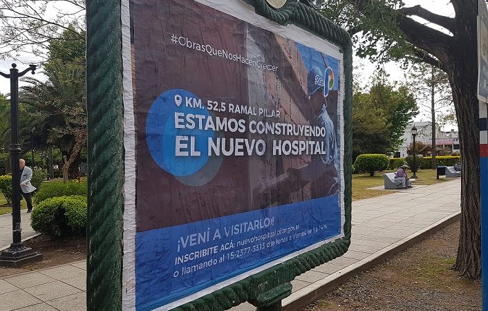 23/10/2018 | El gobierno local a través de publicidad en la vía pública promociona la construcción de "El Nuevo Hospital". No menciona que es la Maternidad Comodoro Meisner que trasladará desde Presidente Derqui. En medio de los reclamos de los vecinos para frenar la playa de estacionamiento salió a vender una obra que su gestión nunca retomó.