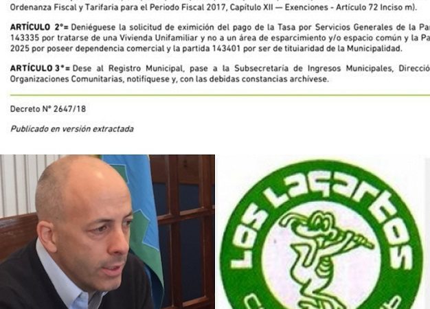 24/08/2018 | El Intendente Nicolás Ducoté decretó la eximición del pago de la Tasa de Servicios Generales a Los Lagartos Country Club. La urbanización privada quedó liberada de abonar por las parcelas que incluyen su cancha de golf y sus dos canchas de polo. Fue una decisión del jefe comunal que nunca pudo ser discutida en el Concejo Deliberante.