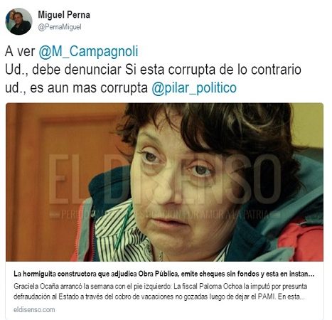 14/02/2018 | El Secretario General de UDOCBA Pilar, Miguel Perna, se refirió al caso de la Diputada Nacional Graciela Ocaña y le pidió la renuncia a quien fue Secretaria de Educación local, Marcela Campagnoli. A la primera la imputaron por defraudación al estado y posee una empresa que emite cheques sin fondos, la misma fue ganadora de una licitación en Pilar para arreglar techos en las escuelas.