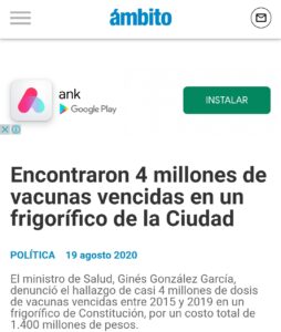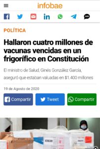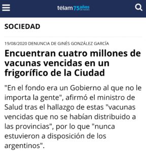 Extrañamente esas opiniones directas, y poco realistas, de la Diputada Nacional no se escucharon cuando en el comienzo de la gestión de Alberto Fernández se encontraron 12 millones de vacunas vencidas en la aduana. Esas dosis nunca fueron repartidas a la sociedad durante el período de Mauricio Macri. La vecina del country Pueyrredon tampoco dijo nada cuando en agosto hallaron 4 millones más de vacunas vencidas en un frigorífico ubicada en la Ciudad Autónoma de Buenos Aires. Estas últimas equivalían a $1.400 millones que el estado nacional pagó y Juntos por el Cambio tiró a la basura.