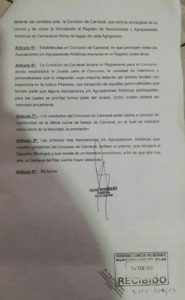 Artículo 2°: Créase la Comisión de Carnaval, integrada de la siguiente forma: un miembro de la Secretaría de Relaciones con la Comunidad, un miembro de la Secretaría de Seguridad Comunitaria, un miembro de la Dirección de Cultura, un miembro de la Dirección de Tránsito y Transporte, y un miembro del HCD.