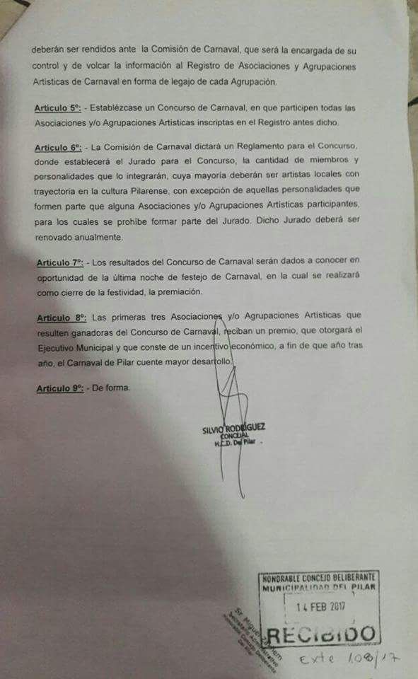 Como estas expresiones populares no han sido del agrado de la gestión local de Cambiemos desde que asumieron en el 2015, en febrero del 2017 por iniciativa del concejal Silvio Rodríguez se trató una ordenanza que acompañe y apoye a estos vecinos. La misma fue aprobada y promulgada de hecho, quiere decir que Ducoté no lo hizo inmediatamente sino que transcurrieron los diez días hábiles para que tome vigencia. ¿No era de su agrado? ¿No le gusta la música de los redoblantes?