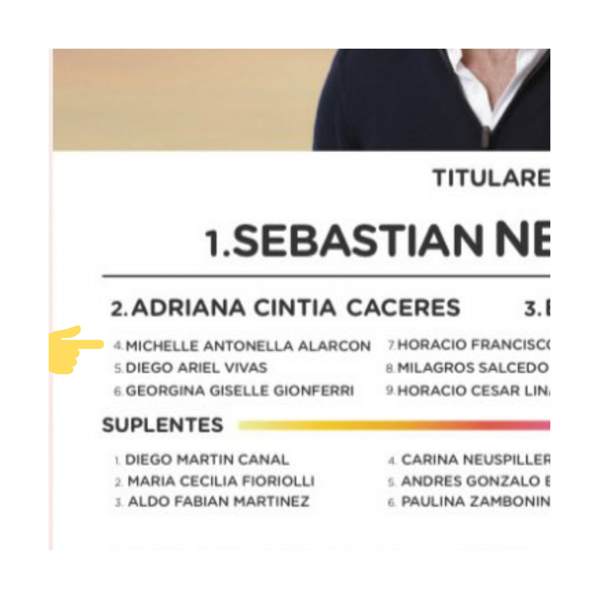 Luego de las PASO a Sebastián Neuspiller le pidieron un acuerdo político para rearmar la lista definitiva que participaría en las elecciones generales. Analía Leguizamón reclamó el segundo lugar, que estaba ocupado por Adriana Cáceres. Pero los santillistas no cedieron, ni siquiera le ofrecieron el cuarto lugar, ocupado por la joven radical Michelle Antonella Alarcon. ¿Por qué?