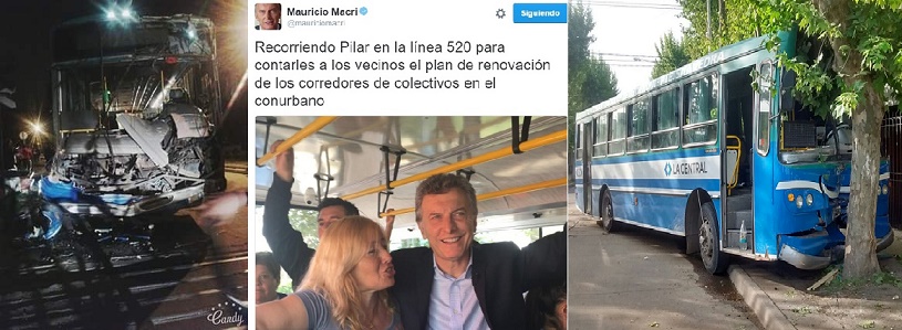 Con las cámaras encendidas, Mauricio Macri se subió a uno de los colectivos nuevos de la línea 520, esto ocurrió el jueves 22 de septiembre. En la cuenta oficial de Twitter del primer mandatario se publicó que estaba haciendo el recorrido como cualquier vecino. Tan sólo un par de horas después se descubrió la falsedad de lo realizado, dejando como cómplice a la empresa que casi ha monopolizado el servicio del transporte público en Pilar.