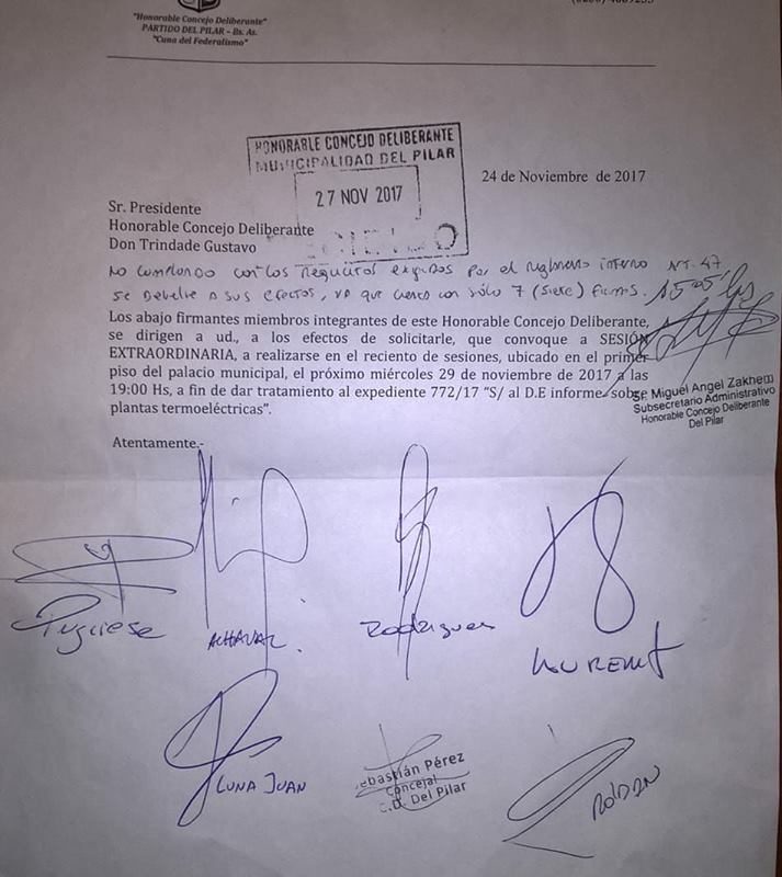 Resultó llamativo que hace tan sólo unos días atrás eran doce concejales los que habían firmado un proyecto de comunicación (un expediente simbólico) donde le exigían un pedido de informe al municipio sobre las obras de las termoeléctricas. Ayer, cinco de esos optaron por ¿modificar su pensamiento? Ni Nicolás Darget, Alberto Zapata, Inés Ricci, Daniel Liberé y Marcia González estamparon su firma en el pedido de sus compañeros de banca.