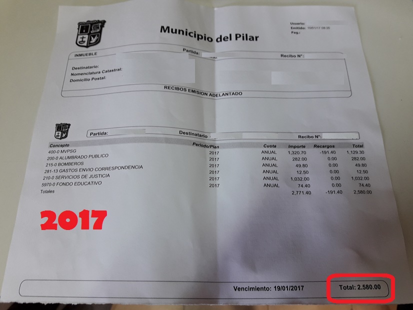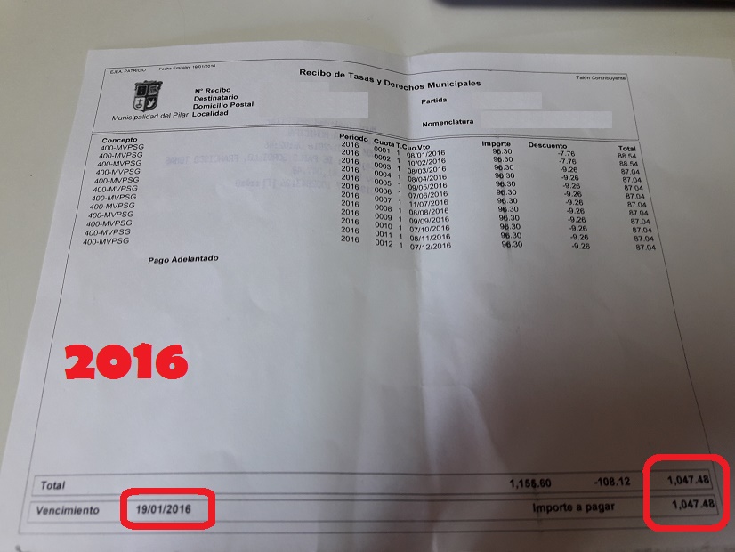 “En noviembre explicamos detalladamente desde el Frente Renovador porqué decidimos votar por la negativa a la suba de tasas tributarias, ya que la tarifaria seguía superando la situación actual económica de los vecinos pilarenses. Comenzó el año y el pronóstico agorero se hizo tristemente realidad”, expresó. “El Ejecutivo municipal mintió abiertamente cuando negaba que las subas pasarían del 20%; hoy ya hay vecinos de Pilar que están pagando subas interanuales en las boletas de la ex ABL (Tasa por Servicios Generales y Mantenimiento de la Vía Pública) con un 60% de aumento, incluso con picos de un 80% si se comparan las boletas de enero de 2017 con las de enero de 2016”, agregó. Uno de los ejemplos de esta situación es la de un vecino de Villa Rosa que debió abonar el impuesto anual con un incremento del 150% (foto).