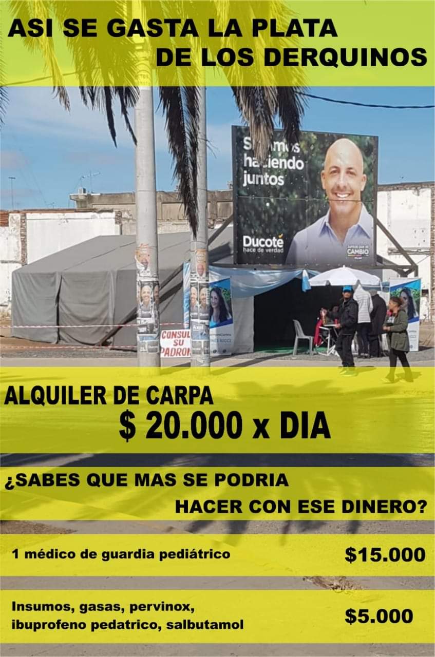 La verdad me da vergüenza ajena, primero porque hay muchísimas personas que no tienen para comer y segundo, que siendo de derqui debería saber bien que somos todos Peronistas. Esos 20mil diarios los ubieras donado a las personas que les prometieron cosas y no le dieron mad que una bolsa de mercadería..Saludos✌✌